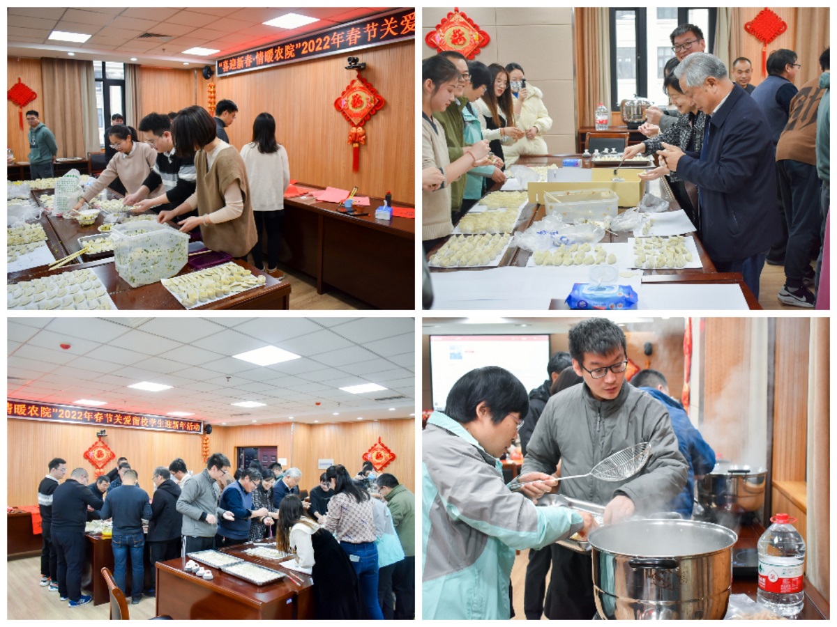 “喜迎新春·情暖农院”2022年春节关爱留校学生迎新年活动正在火热进行中。学院领导班子、研究生导师、辅导员和17名留校研究生欢聚一堂,包饺子、写春联、唠家常、送大礼……一道喜迎新春的到来。