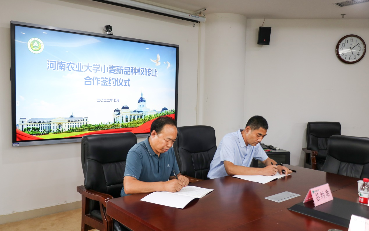 董事长王五与副院长李浩贤签署小麦新品种“豫农906”品种权转让协议