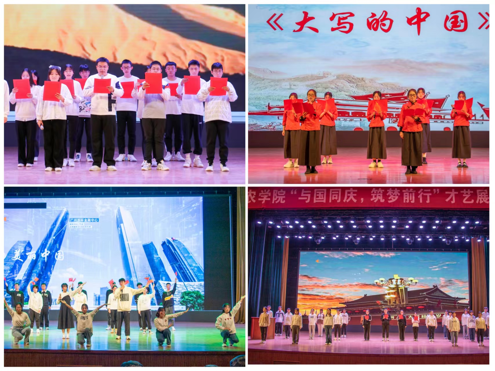 学子神采飞扬的精神风貌,台下观众皆欢声笑语、乐在其中,在座的各位评委认真聆听,严格打分。经过现场评委打分后,2022级中药2班的朗诵节目《大写的中国》获得一等奖,2022级农学7班的朗诵节目《青春》节选与2022级农学1班的歌曲《稻香》获得二等奖,2022级智慧农业2班的舞蹈《Ring The Alarm》与2022级农学4班的朗诵节目《少年身长立,家国魂不息》获得三等奖。