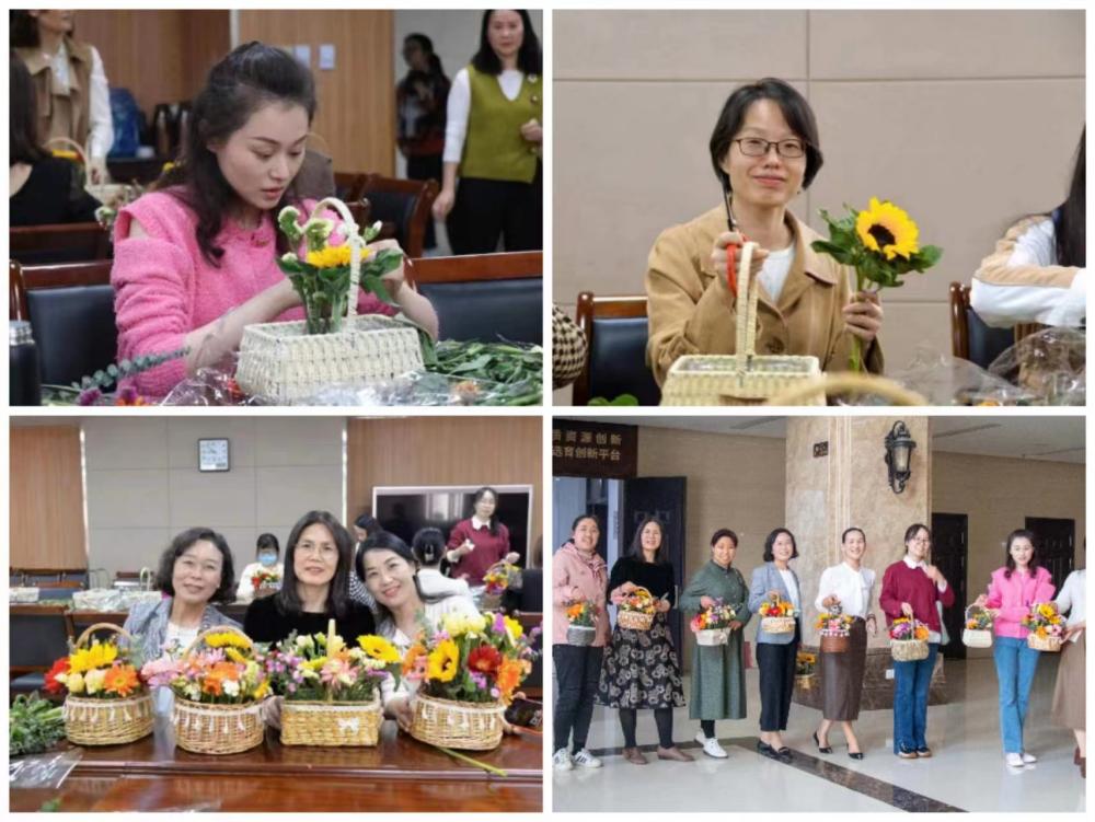 活动邀请到专业老师现场讲解花艺知识,详细介绍了花材品类、插制步骤、插花技巧和注意事项。在专业老师指导下,大家边交流边探讨,充分发挥自己的想象力进行创作。从剪枝裁叶到插枝技巧,从精心造型到色彩搭配,大家在一修一剪中完成了各自错落有致、色彩鲜艳的艺术创作。众多精美作品在欢声笑语的氛围与沁人心脾的芬芳中逐一呈现。活动结束后,学院为参加活动的女教职工颁发了纪念品,并合影留念。