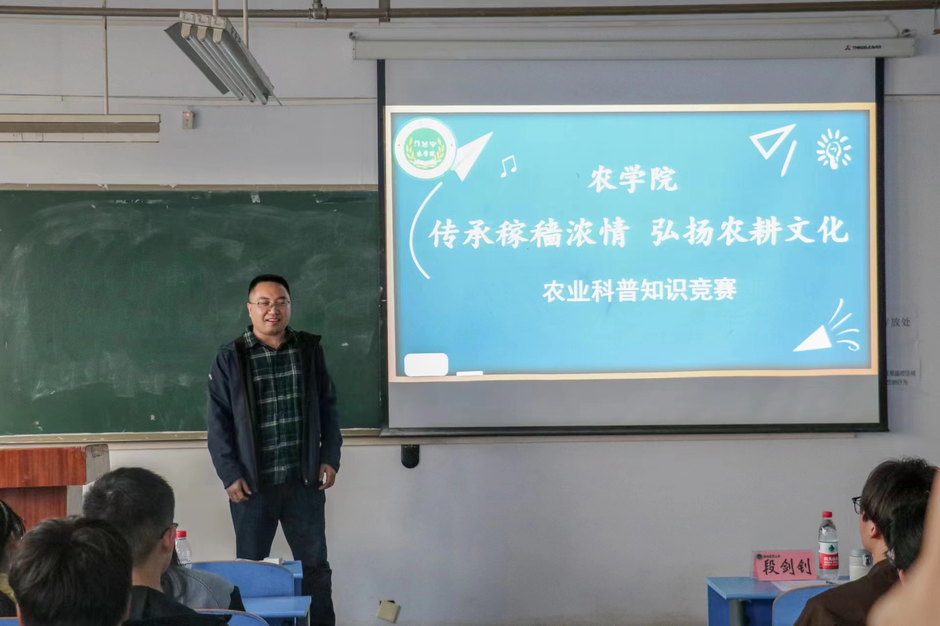 于文化路校区推广楼305教室开展以“传承稼穑浓情,弘扬农耕文化”为主题的农业科普知识竞赛。院辅导员段剑钊及2022级部分学生参加了本次活动。本次活动由学生会学实部李鹏博、张安琪主持。