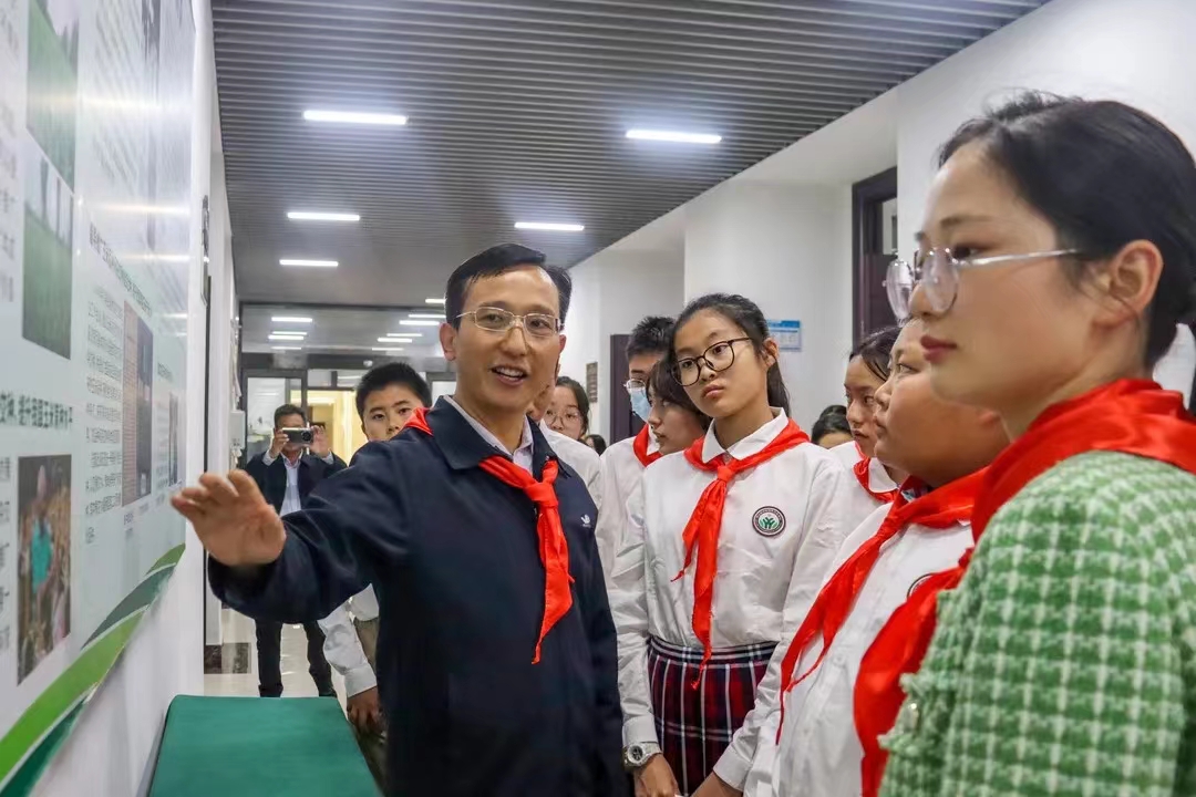 活动开始,李浩川从种子培育和育种改良的科研过程、先进的科研成果、科研人员严谨的科研探索精神三方面进行科普讲解,让学生们认识到科研成果的来之不易以及农业发展的重要性,希望青少年学生们可以崇尚科学,保持对农学的热情,继续探索神秘的科学世界,让学农爱农的种子在青少年心中生根发芽。李玥瑞从学生们熟知的传统节日入手,结合“二十四节气”的知识,深入浅出地剖析立夏时农作物的生产过程,并通过展板讲解、追溯成人电影