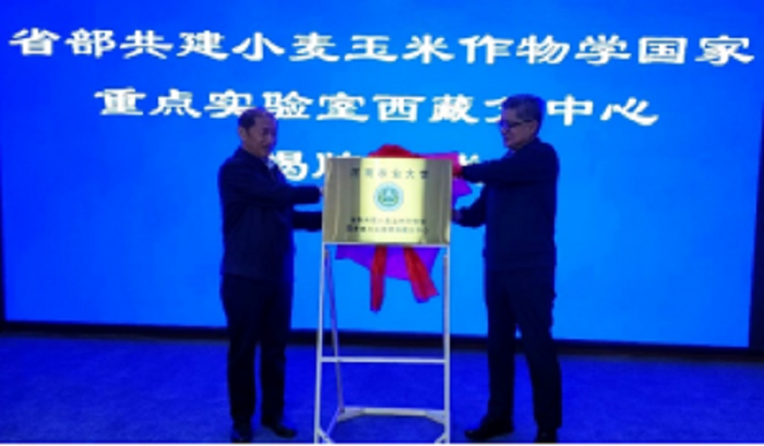 本网讯(通讯员/图 杨建平 梁威)2023年8月12日“省部共建小麦玉米作物学国家重点实验室西藏分中心”在拉萨市曲水县才纳国家现代农业示范园区举行了揭牌仪式,代表我校与西藏的合作迈上新台阶。