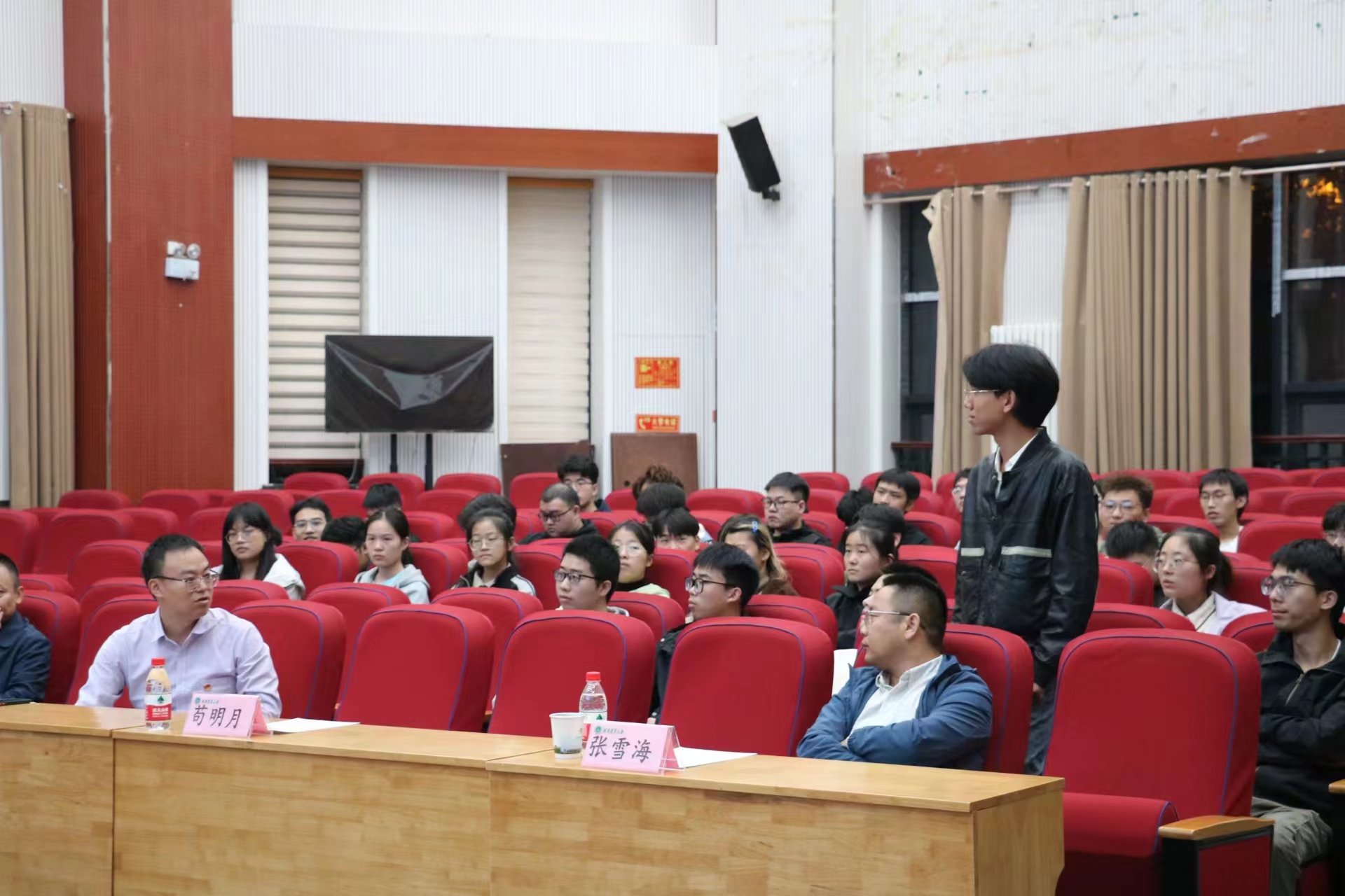 近年来在研究领域取得的相关成就及报考本校的优势,鼓励程度匹配的同学积极报考本校。李鸽子强调学生们要明确考研的目的,注重心态调整,实事求是,刻苦学习的同时也要注意提高身体素质。王桂凤从现实出发谈及考研的重要性,坚定学生们的考研决心与信心。他希望学生们能够了解研究生培养机制,做好人生规划。张雪海结合当前的考研形势从不同院校的优势特点、考研常见的误区、考研信息获取、考研复习准备等方面对考研流程做了详细梳理与介绍。指导会上,考研学生积极提问,同老师们深入交流,指导老师耐心为学生解答疑惑,现场氛围轻松活跃。