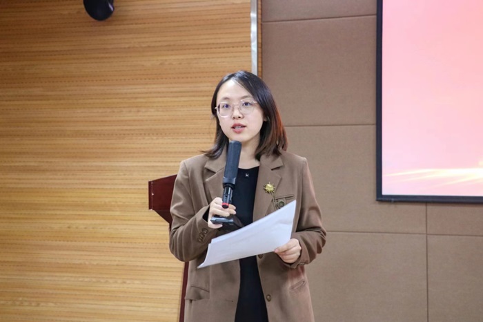接着,社会实践先进个人代表付嘉欣发言,她主要介绍了自己实践过程中的心得体会和自己对乡村发展的建议,并强调社会实践是大学生全面发展的重要途径,它引领大学生深入基层,服务群众,培养大学生的奉献精神。