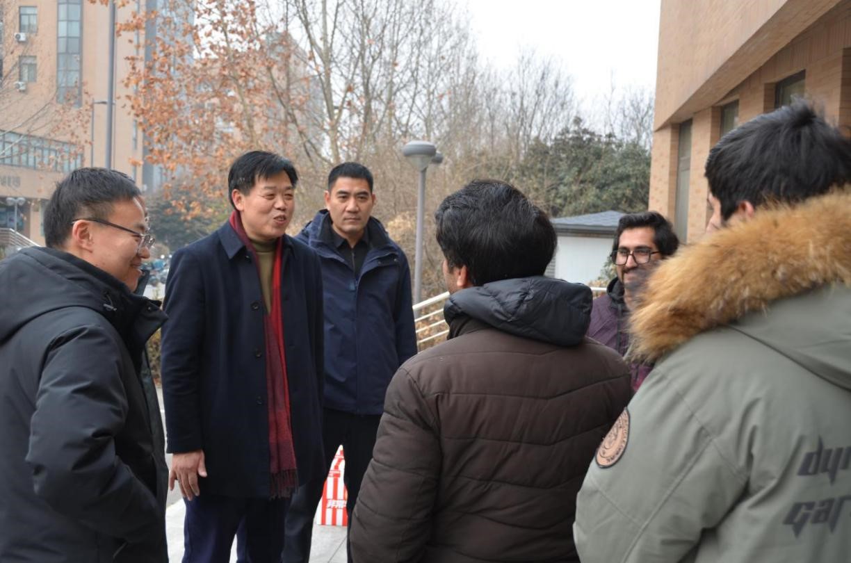 党委书记贾磊,副院长李浩贤、陈锋、李浩川,党政办相关人员一行看望并慰问春节期间留校的留学生和博士后,为留学生送去佳节祝福,传递新春暖意。