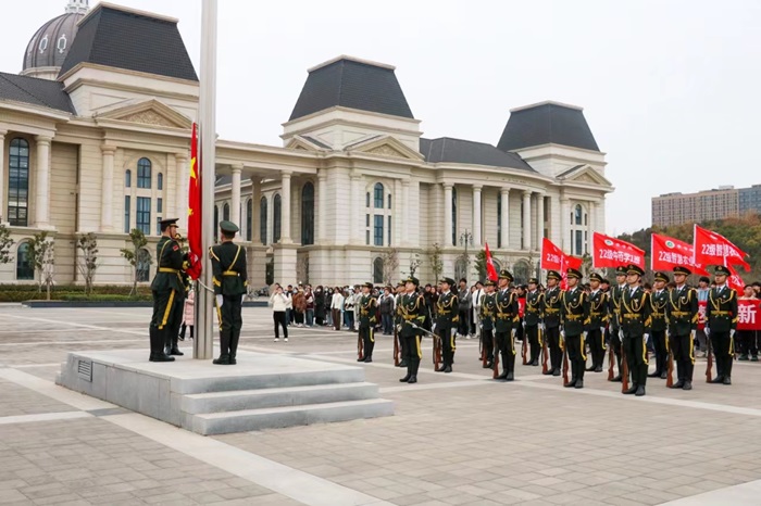 在清晨的微风中,升旗仪式如约举行。庄严的国旗护卫队步伐整齐,带领着国旗缓缓走向旗杆,在庄严的仪仗队队伍的簇拥下,鲜艳的五星红旗在晨光中冉冉升起,激荡着全体师生内心的自豪与敬意。