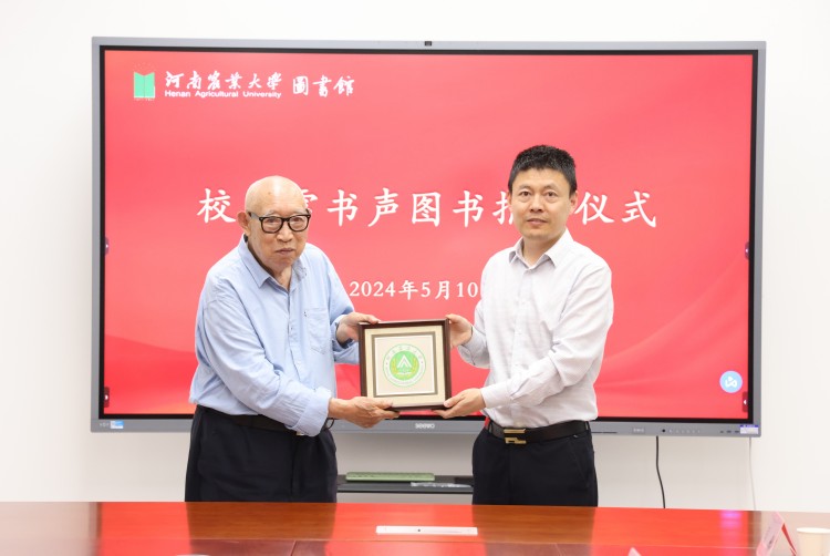 5月10日,阔别母校62载的校友雷书声携编绘著作《甘薯品种资源彩色图鉴》重返母校,将12册著作捐赠给母校图书馆。学校在龙子湖校区图书馆举行捐赠仪式,1958级农学专业校友、商丘农林科学研究所原副所长雷书声,其子、洛阳北方易初摩托车有限公司信息管理部经理雷洪文,学校成人电影