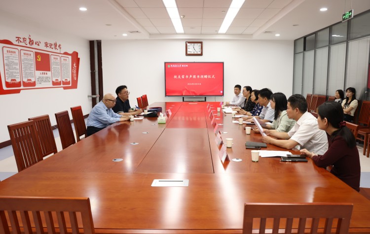 党委书记贾磊,校统战部副部长蒋春红,民盟河南农大委员会主委李瑜,民盟农大委员会副主委张党权,图书馆党总支书记陈明明、馆长张华,校友联络办公室主任胡明忠、副主任闫东等出席捐赠仪式。捐赠仪式由胡明忠主持。