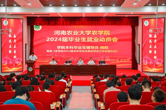 研究生就业管理办法》和《2024届本科毕业生就业创业工作实施办法》。校友代表河南百富泽农业科技有限公司总经理张占锋结合自身经历和农业领域发展前景为毕业生给予择业建议。退役士兵张炜峰做征兵宣讲。