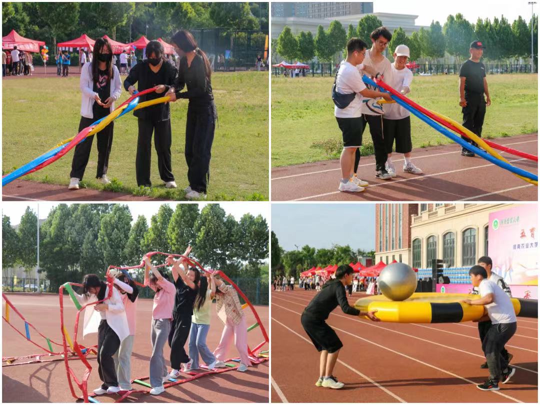 承办的“毛毛虫竞速”活动在趣味活动区开展,以其独特的趣味性和竞技性,吸引了众多学生参与。在“毛毛虫竞速”活动中,学生们三五成群,或蹲或站,围绕着它的起点,紧张而兴奋地准备着。随着裁判一声哨响,他们协调一致地摆动着身体,仿佛化身为一条条活泼的毛毛虫,在赛道上快速前进。现场气氛活跃,欢呼声此起彼伏。