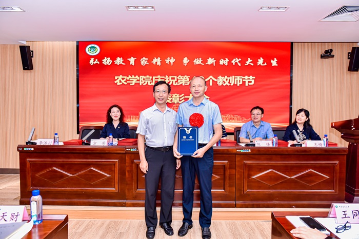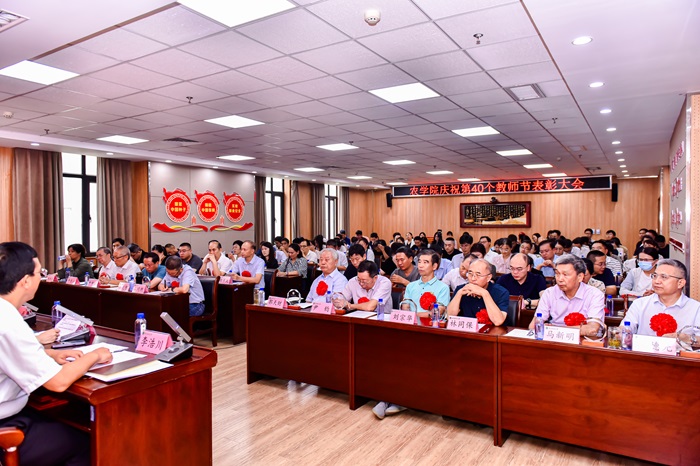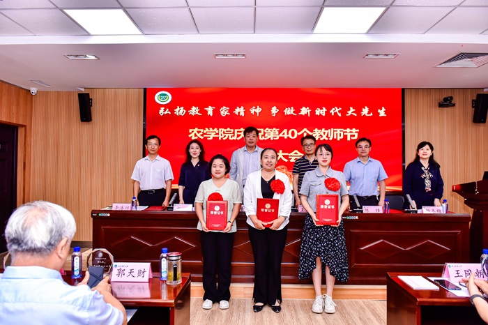 院党委书记贾磊发表教师节表彰大会重要讲话。贾磊书记首先传达了习近平总书记代表党中央向全国广大教师和教育工作者致以节日的祝贺和诚挚的问候。他强调,尊师重教是中华民族的优良传统,国家逐渐提高教师的政治地位,社会地位,职业地位,加强教师待遇保障。作为高校教师,更应大力弘扬教育家精神,加快建设教育强国。他勉励全体农学人都要有胸怀祖国服务人民的爱国精神、要有勇攀高峰敢为人先的创新精神、要有追求真理严谨治学的求实精神、要有淡泊名利潜心研究的奉献精神、要有集智攻关团结协作的协同精神。