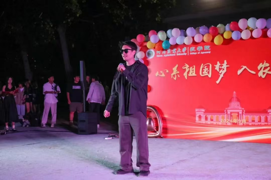 时光流转,秋风相邀。活动在朗诵《盛世中国》中拉开帷幕,农院学子用深情的朗诵表达对共和国生日的祝福。农院百名师生在草坪上席地而坐,操场上的璀璨灯光,是学生内心翻滚的滚烫欢呼;晚风里的流光溢彩,是学生身体里涌动的青春热血。晚会期间,杨航老师用弹唱《等你下课》送给新生祝福和期望,唐朝老师表演了一段动感十足的街舞,热烈而张扬,给学生们带来了一场视觉盛宴,将气氛拉上了高潮。艺术团和au街舞社展示了舞蹈《MEOW》,以舞步为画笔,舞动人生、唱响青春。生科24-2班的杜莹莹同学带来舞蹈《鸳鸯戏》,她用优美的舞姿展现了爱情的美好与浪漫。主持人用简单有趣的小游戏《你来画我来猜》拉近学生们之间的距离,现场气氛十分活跃,学生沉浸在晚会轻松欢快的氛围之中。生科1班全体学生带来大合唱《起风了》唱响了青春的韵味,热情奔赴下一场山海。最后,师生合唱歌曲《晴天》,在音乐的旋律里,让青春记忆的篝火,熊熊燃起。迎新音乐会在大家合影中圆满落幕。