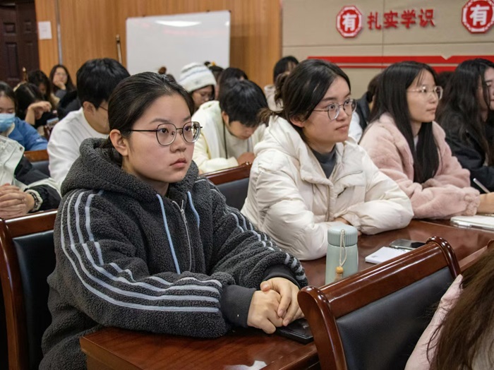 会议伊始,张倩老师进行“增强四力,涵养四气”为主题的学生干部能力提升进阶路径专题培训。她通过“什么是学生干部、为什么要成为学生干部、怎么做好学生干部”三个问题通俗易懂地讲述了学生干部是在学生群体中担任某些职务、负责某些特定职责,协助学校进行管理工作的一种特殊学生身份。同时,张倩希望新时期学生干部应塑造“基于岗位内驱力维度、岗位责任维度和个体成长维度”的画像,做到耳聪、目明、口巧、脑活、腿勤。张倩强调学生干部要做到:增强“四力”——眼力准、脑力活、笔力强、脚力稳,涵养“四气”——朝气、静气、正气、底气,自觉抵制惰气、暮气、邪气,始终充盈青春应有的蓬勃朝气与奋斗精神。她向在座的学生干部提出要求:一是以理想照亮前行之路,做“眼中有光”的学生干部;二是以担当彰显初心使命,做“肩上有责”的学生干部;三是以吃苦锤炼过硬本领,做“手上有招”的学生干部;四是以奋斗书写青春答卷,做“脚下有路”的学生干部。最后,张倩老师推荐学生多关注共青团中央等公众号推荐内容,多阅读《习近平谈治国理政》等方面的书籍,涵养自己的综合素质。