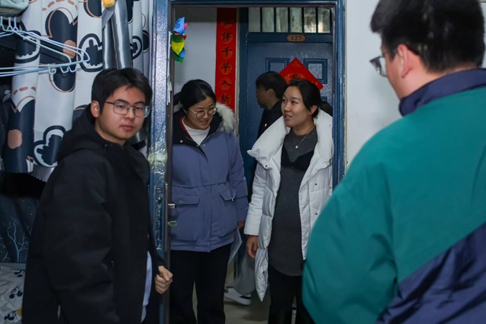 在走访过程中,方书记与学生亲切交谈,详细询问了他们的学习进展、生活情况以及遇到的困难。对于学生提出的问题,老师们耐心解答,并结合实际情况给出了实用的建议和指导。方书记表示,各位同学在努力学习的同时,也要注重宿舍生活的有序和安全,保持良好的生活习惯,营造积极向上的宿舍氛围。