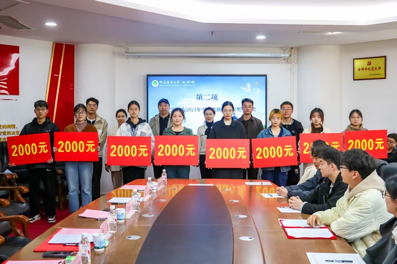关于颁发平安奖助学金的决定》。随后,与会领导为获奖学生逐一颁奖并合影留念。