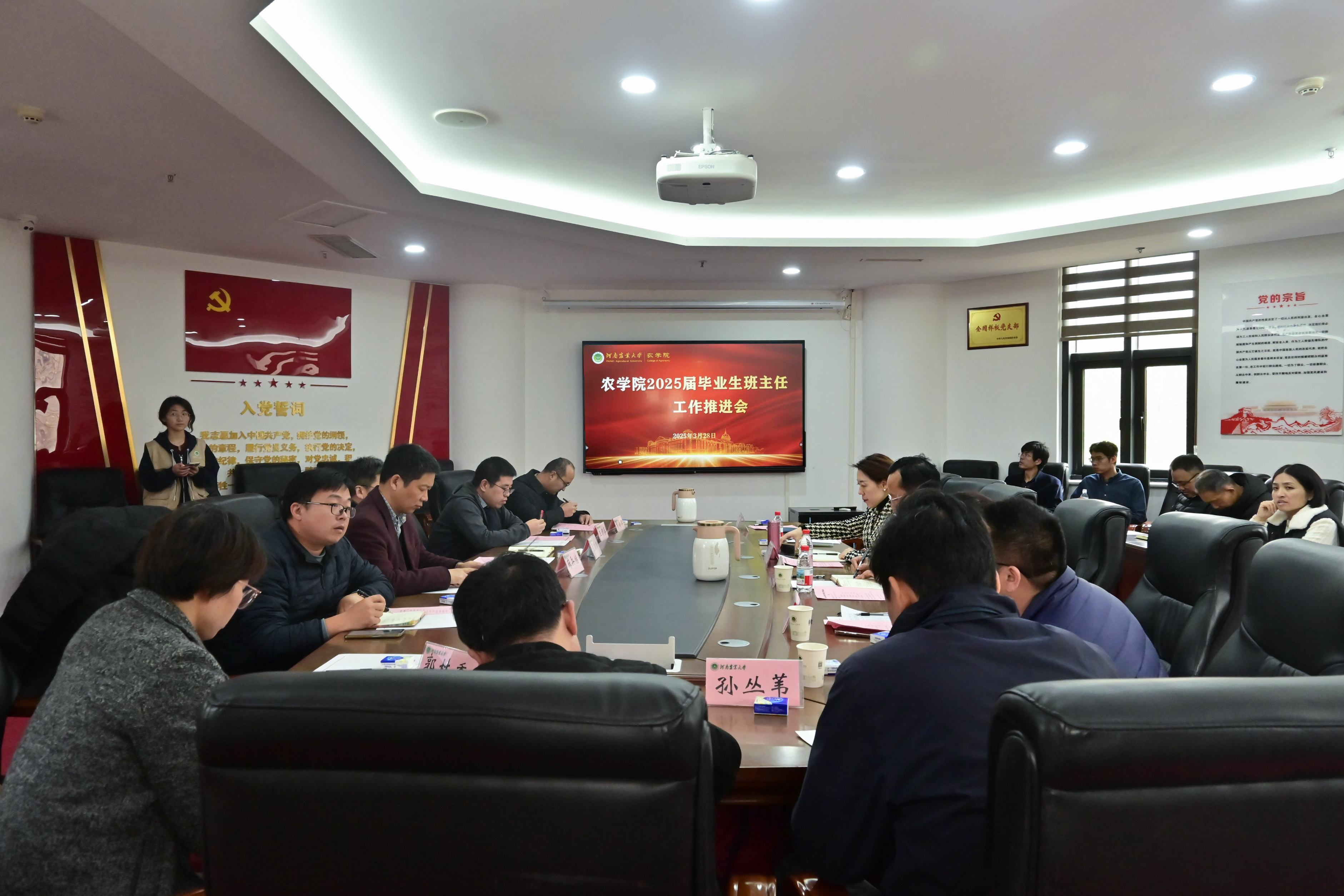 于龙子湖校区第一实验楼南222举办2025届毕业生班主任工作会。院党委副书记方芳、副院长李浩川、院团委副书记唐朝、院团委老师杨航、院各系室主任及2025届毕业班班主任和研究生班主任共同参加此次会议。会议由方芳主持。