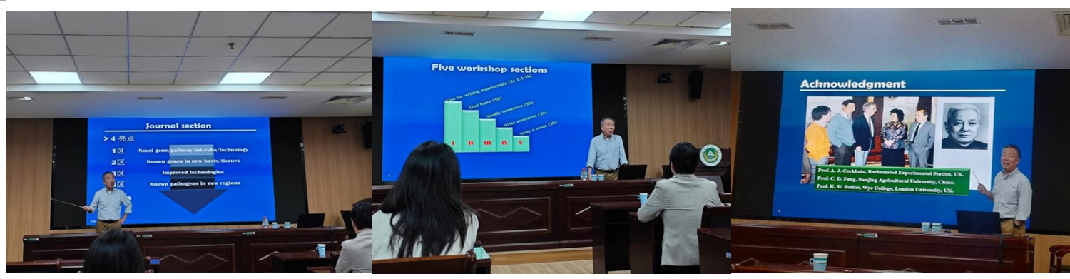 该系列讲座由王道文研究员、张建萍教授主持。院党政办公室副主任穆君怡、王娅茹、钱青秀老师,作物基因组学与分子育种中心主任苟明月、张坤普教授等多位老师为此次讲座的顺利举办付出了辛勤的努力。此次讲座不仅提升了学生的论文写作能力,也促进了校内不同学科背景师生之间的交流与合作,为学校科研创新与国际化发展注入了新的活力。