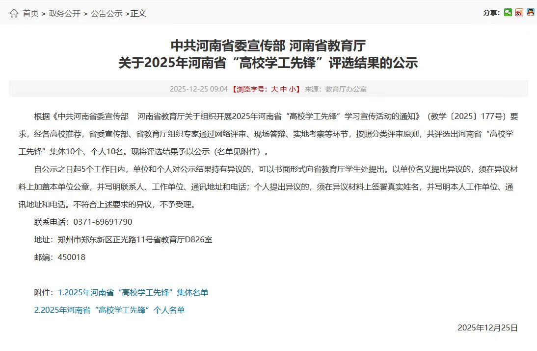 本网讯(通讯员 秦仪雯)近日,中共河南省委宣传部、河南省教育厅联合公布了2025年河南省“高校学工先锋”评选结果,经各高校推荐,省委宣传部、省教育厅组织专家通过网络评审、现场答辩、实地考察等环节,成人电影